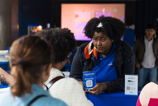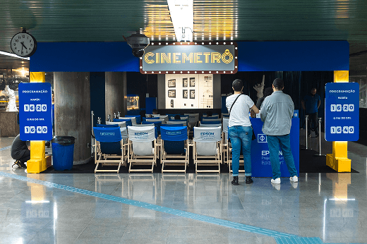 Aproveitando o mês de férias escolares, nós promovemos os novos projetores da Epson com sessões variadas de filmes infanto-juvenis e documentários históricos de futebol nas estações Santa Cecília e República. Com pipoca gratuita, os visitantes poderam aproveitar a programação no conforto das cadeiras personalizadas disponíveis no stand.