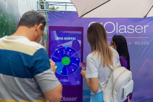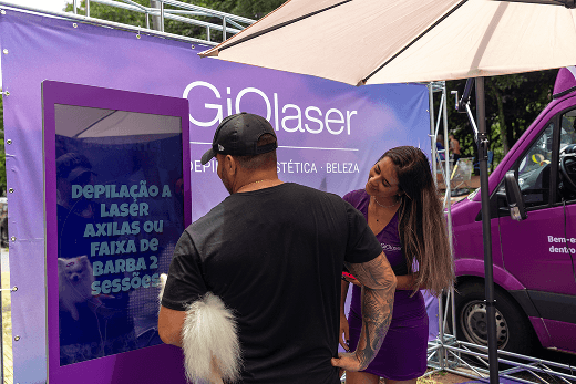As surpresas não se limitaram a isso! Ao girar a roleta digital, quem estava presente ganhava brindes exclusivos, elevando ainda mais a experiência do dia. Encantadoras promotoras com ecobags personalizadas distribuíram leques informativos da Giolaser, espalhando o encanto por toda a cidade! Mais do que uma simples experiência, tornou-se um estilo de vida.