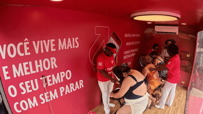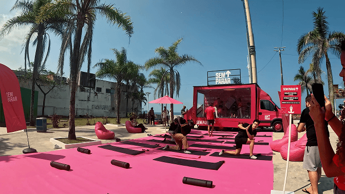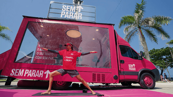 Para mostrar que até quem vive em movimento merece uma pausa, em parceria com o Sem Parar, criamos uma ativação completa de bem-estar à beira-mar para a campanha “Viva Seu Tempo”. Proporcionamos massagens gratuitas, aulas de yoga e um ambiente acolhedor para recarregar as energias. Uma ação criada para reforçar o conceito: “Você vive mais e melhor o seu tempo com o Sem Parar.”