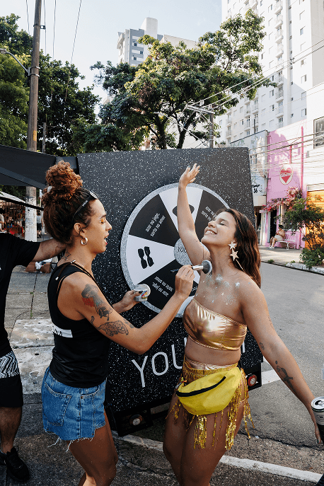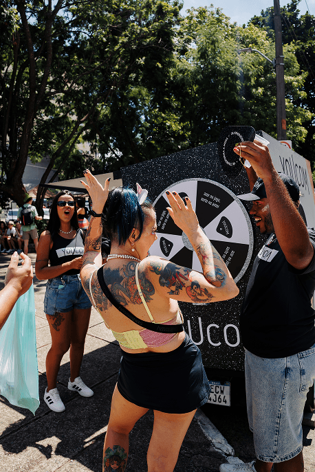 Entramos no ritmo da festa garantindo que todo mundo estivesse no close certo, com brindes exclusivos e muita diversão. O Tuk Tuk da Jokerman, totalmente instagramável, trouxe uma roleta de prêmios, plaquinhas com frases carnavalescas e promotores prontas para aquele pit stop de glitter que fez todo mundo brilhar na avenida!